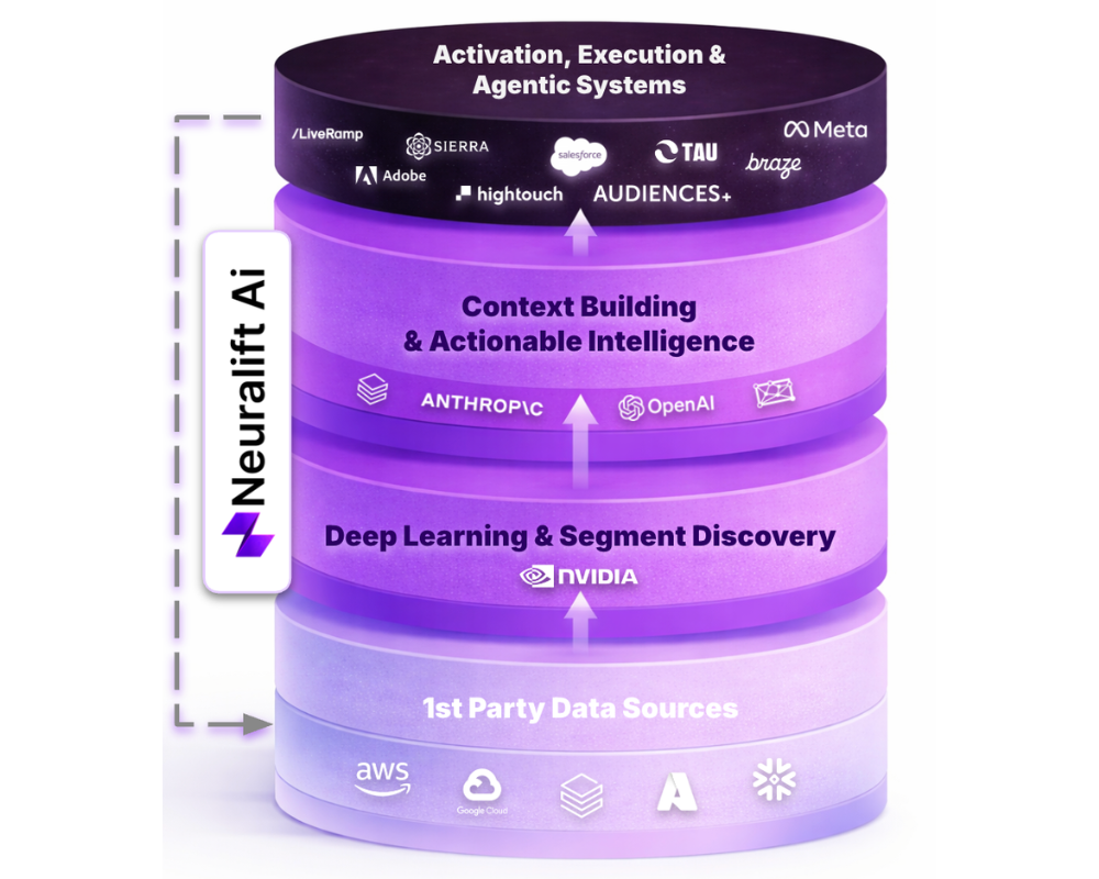 La imagen adjunta (Neuralift Ai) resume bastante bien esta lógica, aunque de forma interesada y corporativa, como suele ocurrir en este tipo de diagramas. El esquema divide el stack en cuatro pisos: fuentes de datos propias en la base, deep learning y discovery encima, una capa de contexto e inteligencia accionable a continuación, y una última de activación, ejecución y sistemas agentic en la parte superior. Lo interesante de este gráfico no es quién aparece en cada capa, sino el mensaje que deja entrever: la infraestructura sola ya no basta, la activación sola tampoco, y el valor aspiracional se concentra en las capas intermedias donde el dato se transforma en señal útil y después en decisión. Ese tipo de representación se está usando ya en el mercado como forma de explicar nuevas propuestas de valor. Algunas empresas lo presentan con nombre propio y ocupando las capas centrales del modelo, como pieza de posicionamiento, tiene lógica y como señal de mercado, también porque cuando varios actores empiezan a dibujar el mismo mapa, aunque se coloquen a sí mismos en el centro, normalmente no estamos ante una moda aislada, sino que estamos viendo cómo se está intentando fijar el nuevo lenguaje de poder del sector.